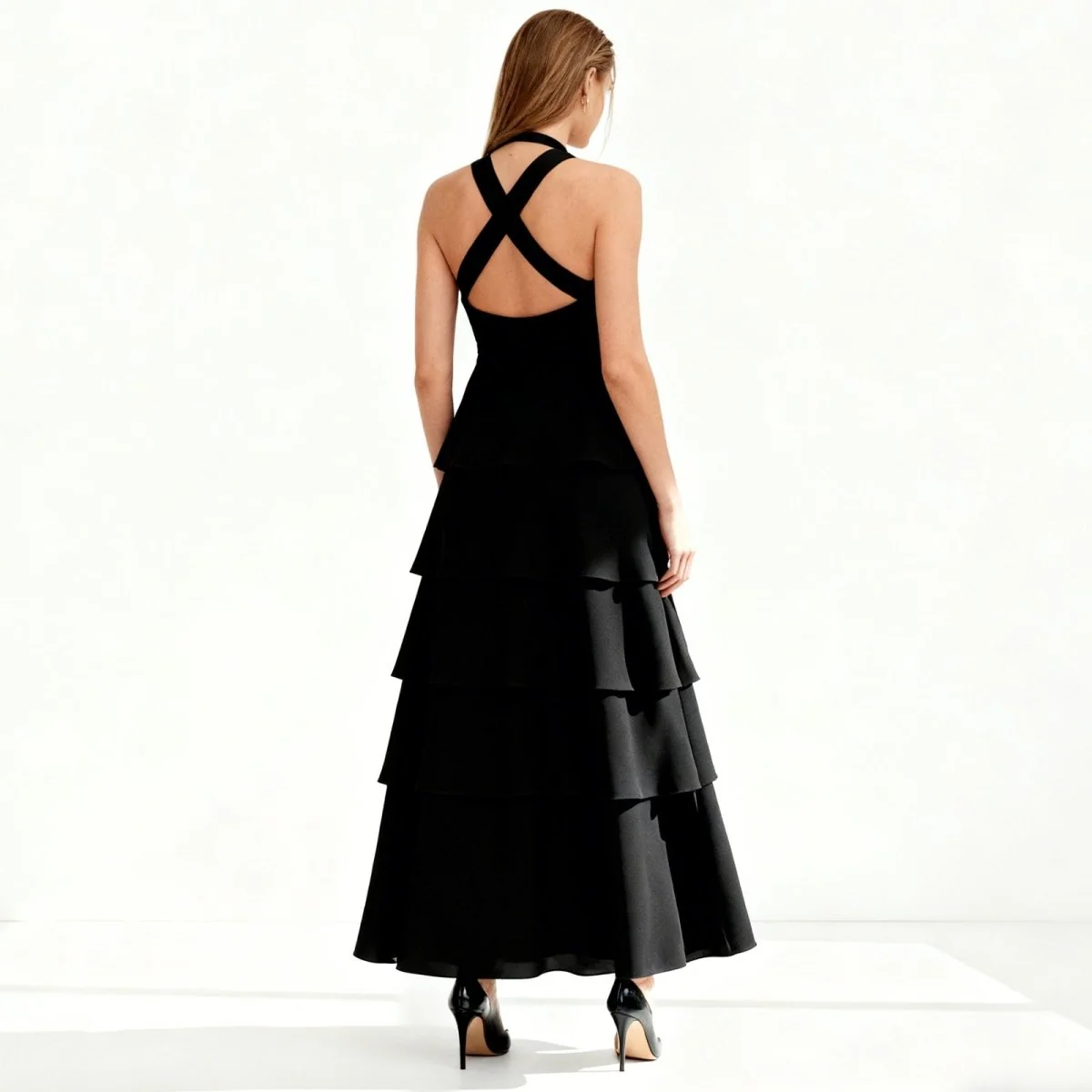 - Dynamic Movement: Six meticulously layered tiers add stunning volume and motion with every step you take.