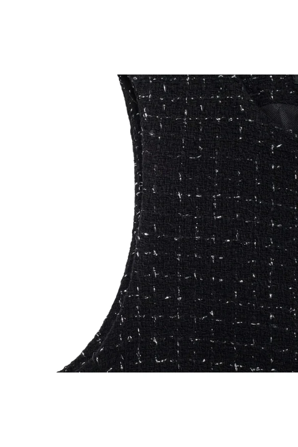 Elevate your wardrobe with this Textured Cropped Waistcoat, a perfect balance of sophistication and modern flair. Featuring a sleek round neck and sleeveless design, this waistcoat is accented with metallic threads for a subtle shimmer and finished with embossed gold buttons for a touch of luxury. Its cropped silhouette makes it ideal for layering over dresses, blouses, or tailored pants, adding a polished yet contemporary vibe to any outfit. Perfect for both day and evening wear, this versatile outerwear piece is a must-have for stylish, confident women.Ā
